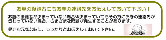 なお、遠方、高齢等の理由によりお墓の管理が困難な方は、当寺院へご相談ください |